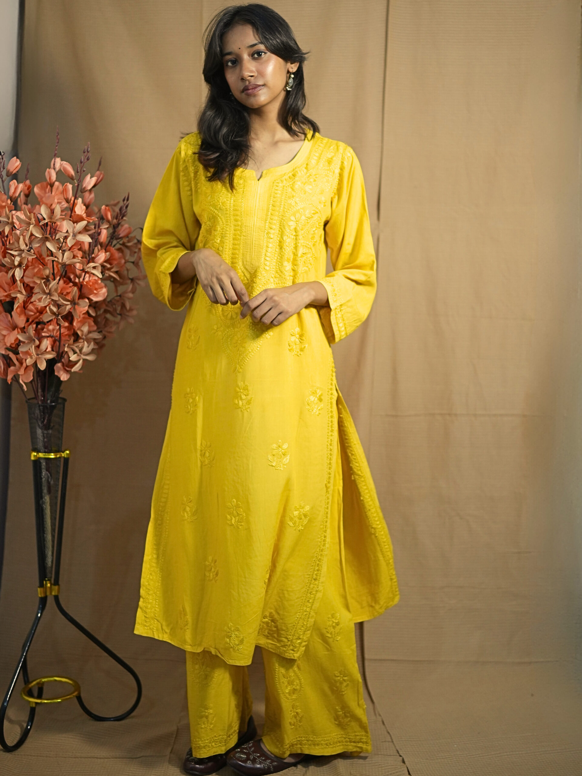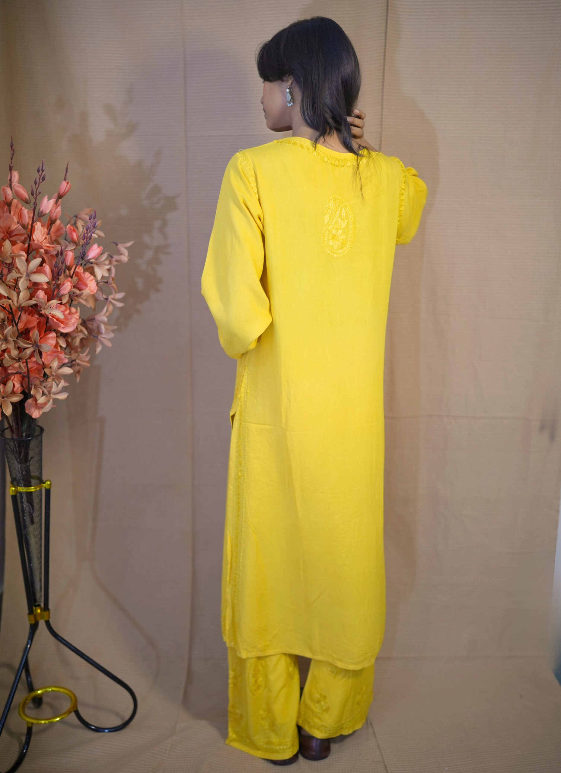 Lila Rayon Chikankari Kurta Palazzo Set –Dandelion Yellow