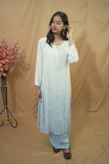 1 review for Lila Rayon Chikankari Kurta Palazzo Set –Dandelion Yellow