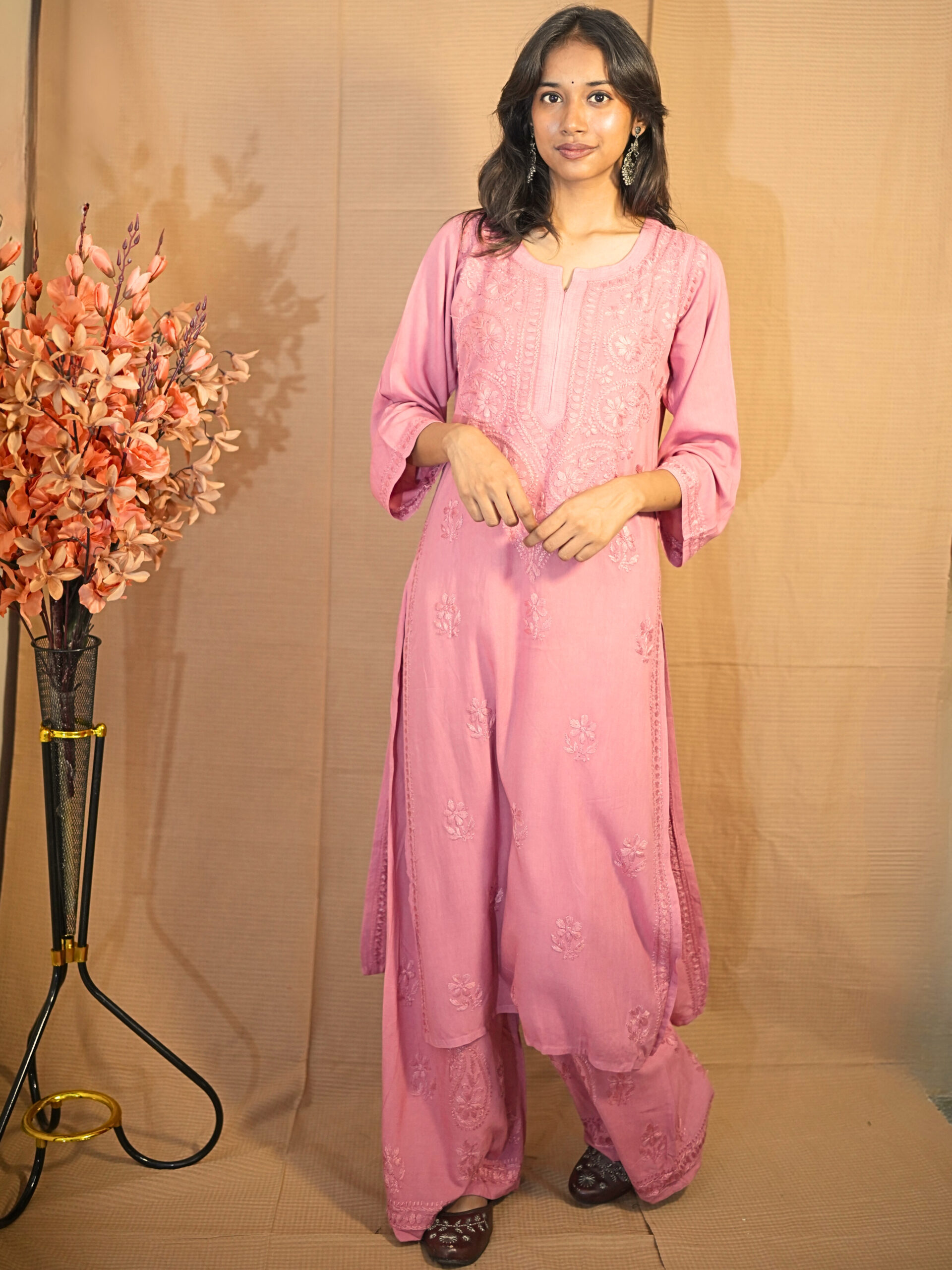 Lila Rayon Chikankari Kurta Palazzo Set – Georgia Peach
