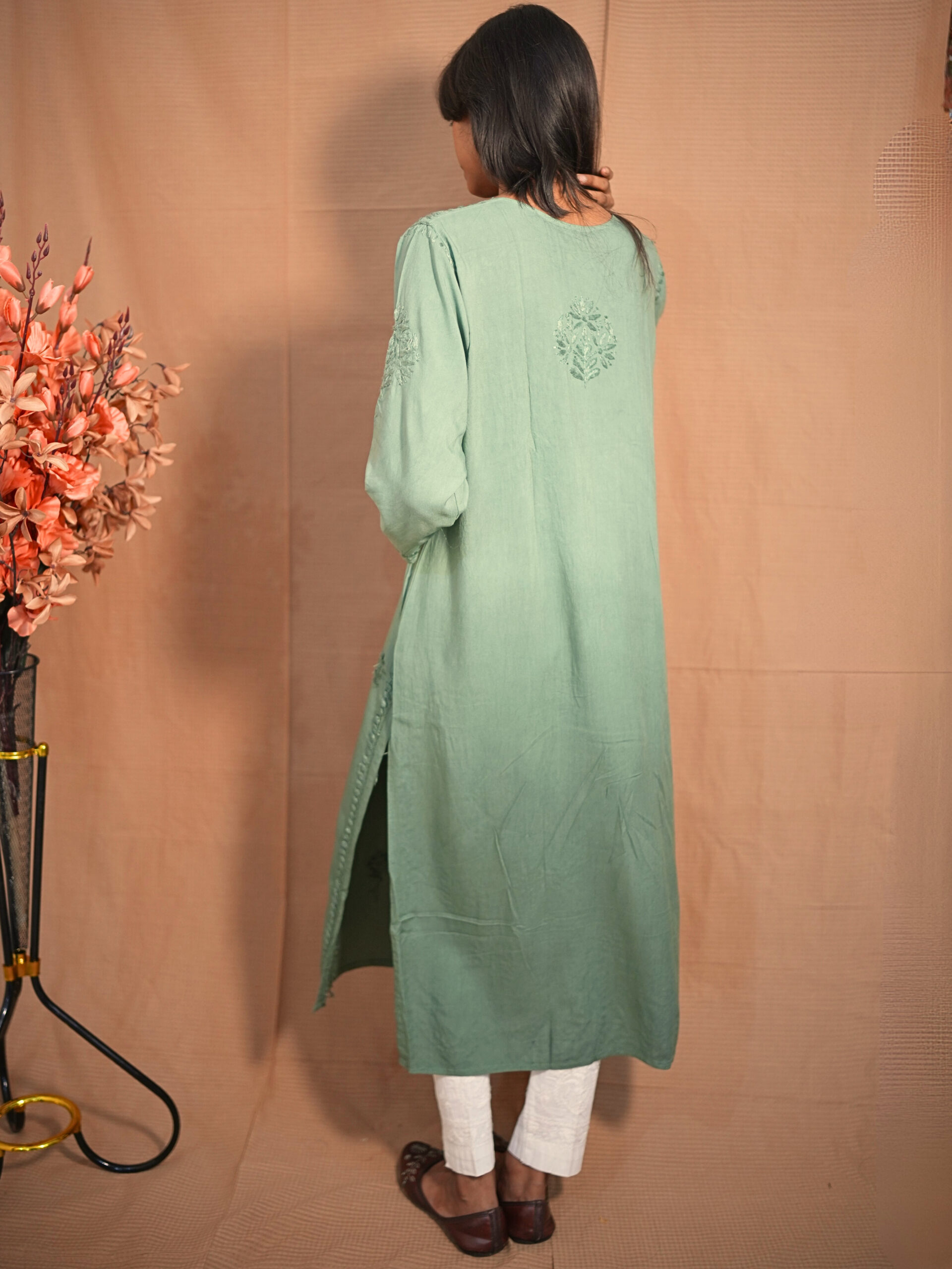 1 review for Swara Rayon Chikankari Kurta – Teal Green